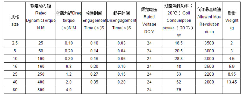 4.離合器線圈電壓波動不超過+5%和-15%的額定電壓;